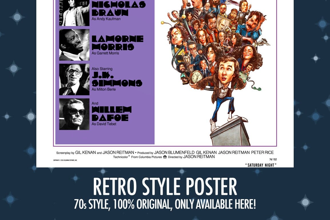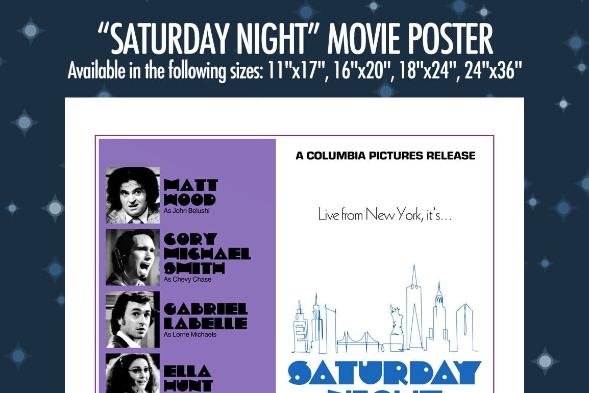 Live from New York, it's Saturday Night! Celeberate the 50th anniversay of Saturday Night Live with this original retro-style poster for Jason Reitman's "Saturday Night" (2024)! This design was inspired by the movie posters of the 1970s. As with all of my art, it's original and only available here. This is the perfect purchase for any SNL fan. Available in the following sizes: 11"x17", 16"x20", 18"x24", and 24"x36". The poster is professionally printed on premium semi-gloss photo paper with a thickness of 7.4pt.