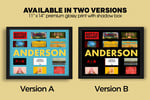 The background poster itself is printed on thick, professional, glossy paper (including the 3D title cards) and is delivered to you framed in a quality shadow box with real glass!